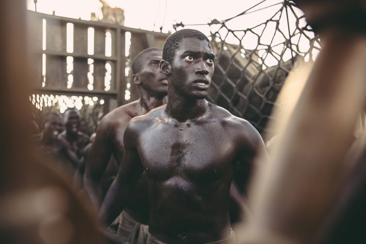 Malachi Kirby as enslaved man Kunta Kinte, in the 2016 History Channel adaptation of Roots. BBC/A+E
