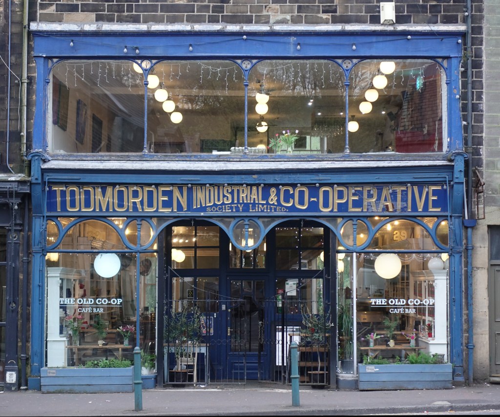 Art nouveau co-op stores were unusual, so the survival of Todmorden’s beautiful 1909–10 drapery should be celebrated. Not a purpose-built co-op, it was refronted for the local society, which needed more room for sales of fashions and household textiles. The store, on the prestigious Strand (now Rochdale Road), was refitted – including glazing with sinuous timber mouldings – during 1909, and the grand opening took place on 26 January 1910. The store is now in use as a bar and restaurant; many original interior fittings, including a fine wooden staircase, remain.