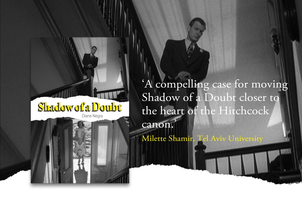 Shadow of a Doubt is my favourite film and I’ve been fortunate to talk about it with students in lots of different places including the US, Germany, Spain, Poland, and Norway. Inevitably, student responses to it added to my understanding of the film and enriched my appreciation of it. I was in my 20s when I first taught Shadow and I’m now in my 50s and I’ve realized that my primary identification point has shifted from Charlie Newton to her mother Emma Newton. That has probably complicated and altered some of the feminist arguments I make in the book.