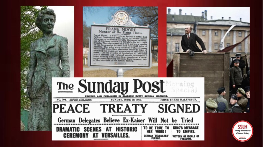 The book is organised into five parts. The first section deals with race, labour and empire. Viewed from below, the white European imperial powers sought to exercise their prerogative at the Paris Peace Conference according to the norms of nineteenth-century diplomacy. Even in Paris, new participants the United States and Japan signalled that the heyday of European ascendancy was over. Outside Paris, the contradictions of the imperialist aims and progressive wartime propaganda, of class lines and colour lines, of women’s mobilisation followed by pressure to return to ‘normal’, of the incompatibility of imperialism and the universal principal of nation burst forth in waves of contestation. The first part of the book illustrates the interplay of these forces with the field of contention at four nodal points: Elaine (Arkansas), Glasgow, Trinidad and the former Russian empire. Highlighting the diversity of experience, the four case studies encompass different forms of contention (or combinations thereof): strikes, mutiny and race riot. In all, race, war veterans, class organisations come together in a potent mix.