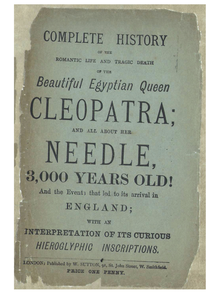 Among the eighty results that a search for ‘Cleopatra’s Needle’ will turn up in the British Library catalogue is a pamphlet breathlessly titled