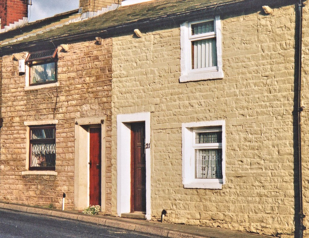 The two cottages were once one, similar in appearance to that at New Row, Livesey. However, it contained two loomshops, one above the other, each lit by a row of three windows. Several sills and lintels of the blocked windows can be seen in situ, along with a mullion next to one of the door jambs at number 21.