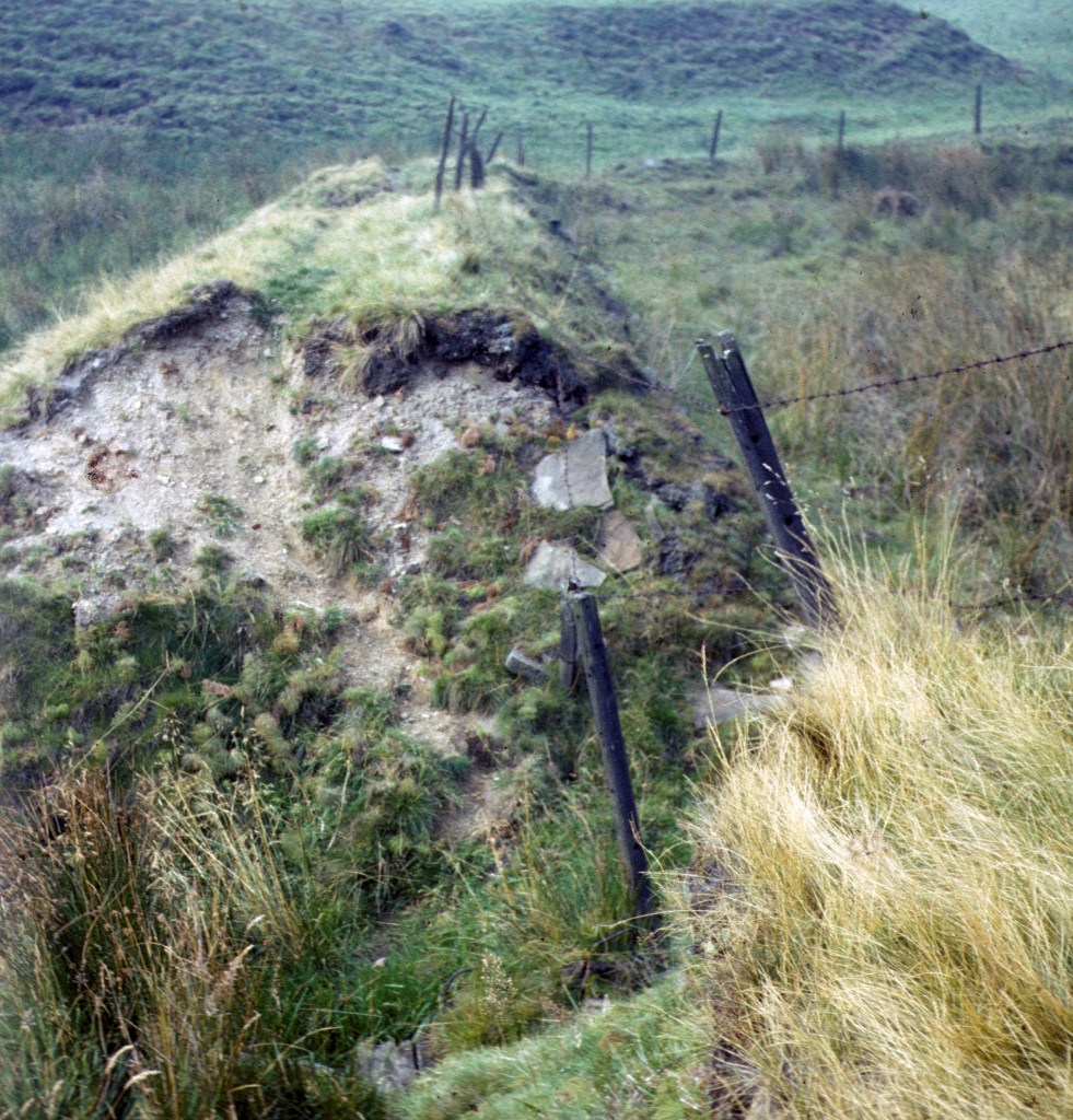 As can be seen, the reservoir comprises a substantial earth embankment strengthened by an interior stone lining. The opening revealing the cross-section marks the position of the reservoir’s original overflow.