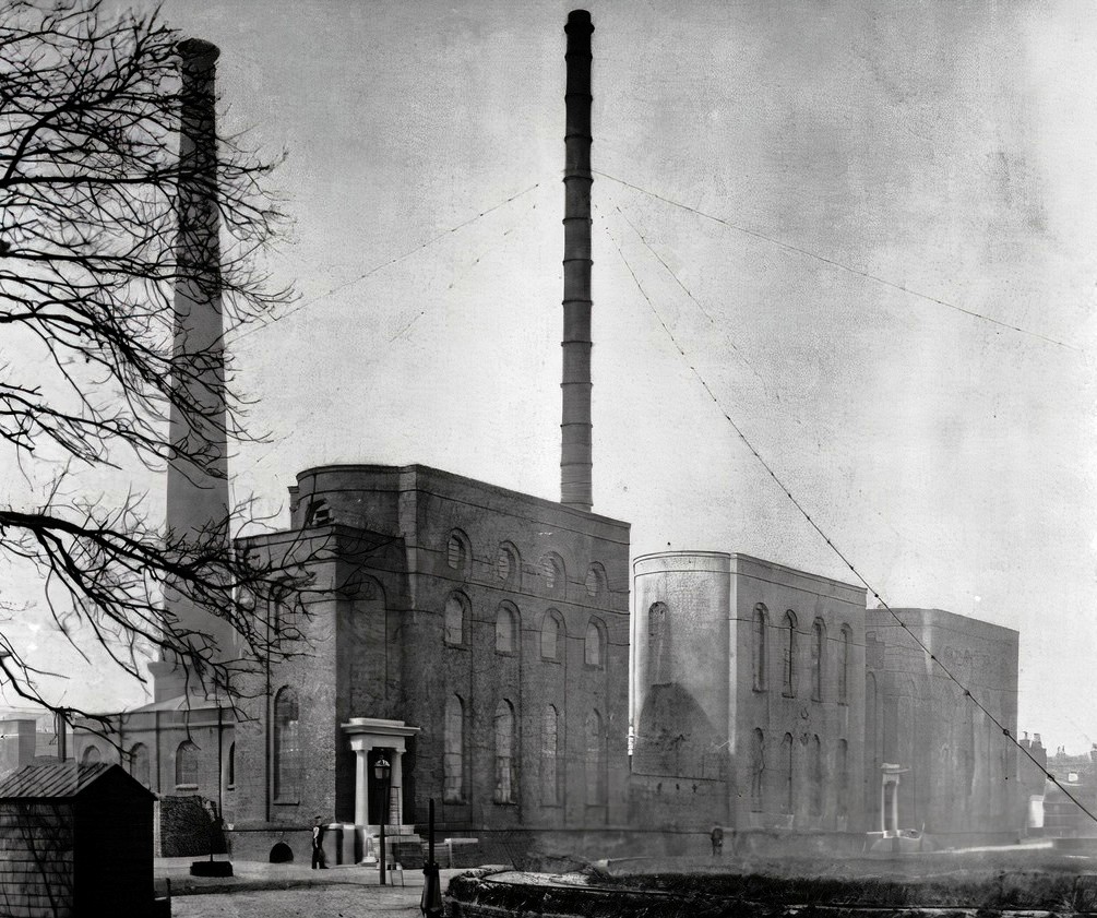 The first dedicated designs for steam waterworks pumped from a tributary of the River Thames in East London, and was erected between 1817 and 1826. The three austere but elegant Georgian engine houses were influenced by the great warehouses of the London docks where their designer had trained. When complete, Old Ford formed possibly the largest concentration of steam power in the country.