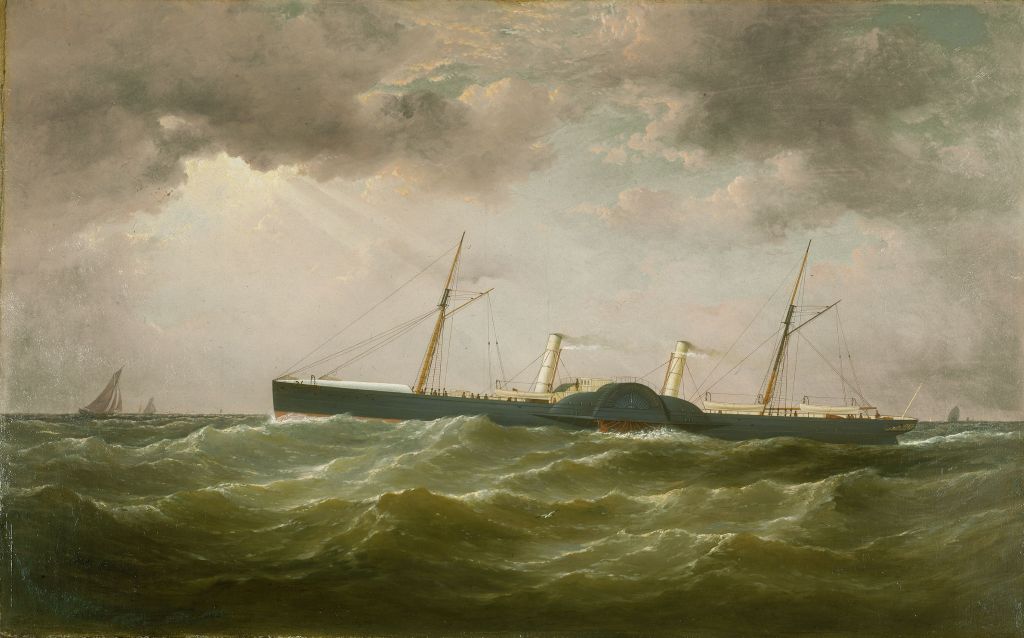 The portraitists would have spent time around the docks and waterfront not only taking sketches and notes for their paintings but also keeping abreast of developments and seeking clients. It is likely most portraits were commissioned by those most closely associated with the vessels – the builders, owners and also the captains and sometimes the senior crew. Few details of sales survive and it is mainly by tracing the history of paintings back to their original owners that we know who bought them. Samuel Walters’ canvas of the Confederate paddle steamer Banshee was owned by the vessel’s builder, William Quiggins who frequently commissioned paintings of the vessels he built. Individual ship owners were important purchasers and from the mid-nineteenth century many local companies such as Cunard, White Star, Harrisons, Bibbys and Brocklebanks regularly commissioned paintings of their vessels for display in their offices where many remained until the companies themselves disappeared or were taken over and such items were of little interest to the new owners.