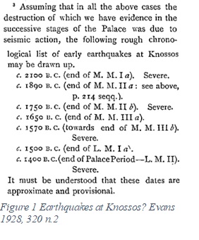For Evans, now, the architectural history of Knossos, and the whole of Minoan history, with its division into periods of Early, Middle and Late Minoan I, II and III, could be tied to earthquakes rather than humans (see Figures 1 and 2). These natural events could have significant impacts on society, as he knew from other episodes in Cretan history: “Nor can the possibility be ignored that these great natural convulsions had political consequences, and that they may have been productive of the uprising of depressed elements in the population, or of a change of dynasty […]. Did the wholesale havoc wrought by earthquakes – again and again repeated at intervals of not more than one or two generations throughout a large part of Minoan Crete – provoke desertion and emigration?.” Later on, the final destruction, ‘the last catastrophe of Knossos’, was also blamed on an earthquake – for how could any human enemy have possibly defeated the Minoans? Evan’s utopia could only have been destroyed by nature.