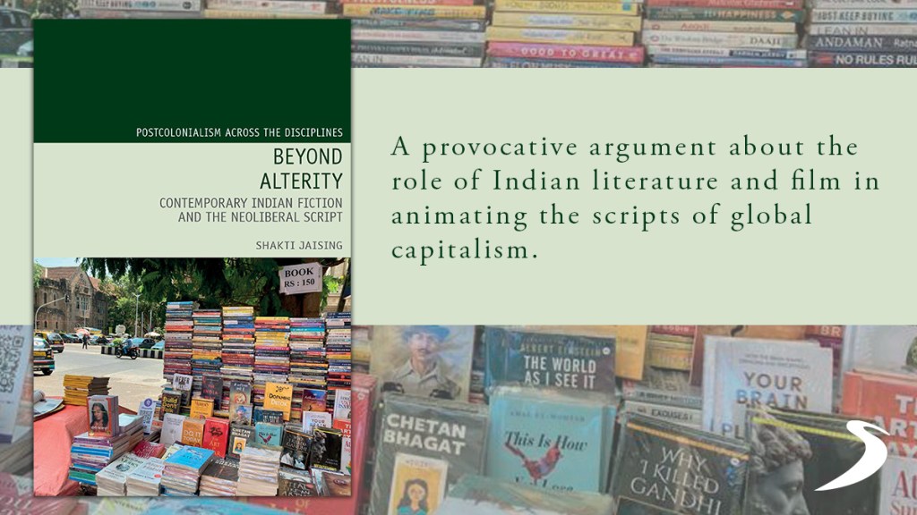 Beyond Alterity: Contemporary Indian Fiction and the Neoliberal Script explores how culture and consciousness have been impacted, particularly in India’s case, by economic transformations of the last four decades. The book’s cover includes a photo I took recently of a street bookshop in Mumbai. Here the novels of Chetan Bhagat—the biggest-selling Indian English-language novelist—appear as the sole examples of fiction amidst memoirs like Why I Killed Gandhi and Autobiography of a Yogi, as well as self-help titles like Build Don’t Talk and Steal Like an Artist. For me, this street display encapsulates the manner in which genres of imaginative writing like the Indian English novel have been subsumed by the broader ethos of neoliberal capitalism. Whereas the Anglophone Indian novel is often framed as an exemplar of postcolonial resistance, Beyond Alterity argues that the genre’s contemporary examples offer less an easy model of resistance than a vital means of insight into the entanglements between literature and neoliberalism.