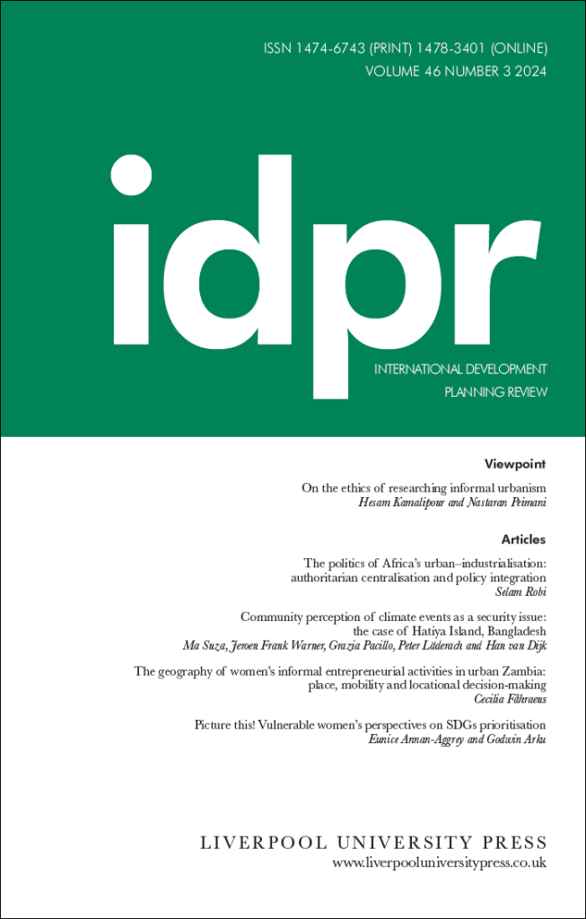 The editors of International Development Planning Review (IDPR) have selected the following paper as the Featured Article in IDPR 46.3.