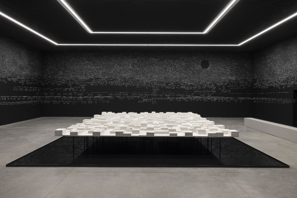 I visited Archie Moore’s kith and kin, Australia’s Pavilion at the 2024 Venice Biennale, in October. Names of the artist’s family and ancestors, drawn on the black walls in white chalk, spider up onto the ceiling. Hundreds of thousands of names, each inside a small speech bubble. Their crowded presence pitches me back in time 65,000 years towards the beginnings of Indigenous Australian civilization. The thousands of pages on the table name the Indigenous Australians who died in the penal system. Some of them died in the nineteenth century; shockingly, most in the twenty-first century.