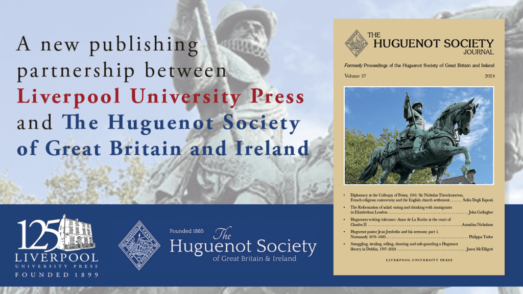 “Liverpool University Press is delighted to begin a new publishing partnership with The Huguenot Society to publish ‘The Huguenot Society Journal’ from 2024. We are sure that Huguenot scholars and students will find the journal an invaluable resource, and that it will continue to be at the forefront of research in this area.”