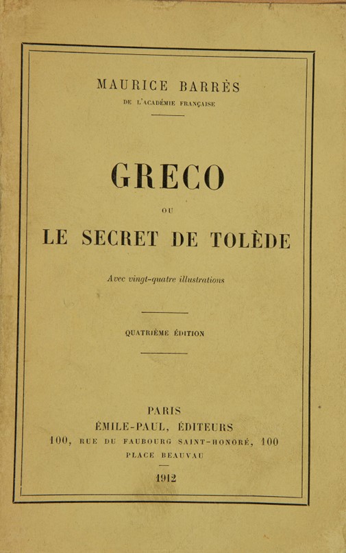 Even during the nineteenth century, British, French, Spanish and German art historians published historical overviews of Spanish art in which they awarded El Greco a place in the early phases of the Golden Age of Spanish painting. The famous French nationalist author Maurice Barrès even dedicated an entire book to the painter [Fig. 6], in which he presented his mystical paintings as fundamentally in line with a deeply rooted Spanish Catholicism.
