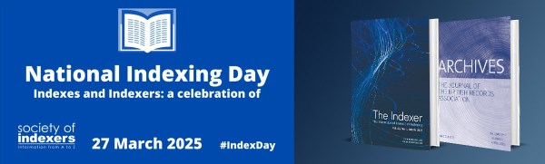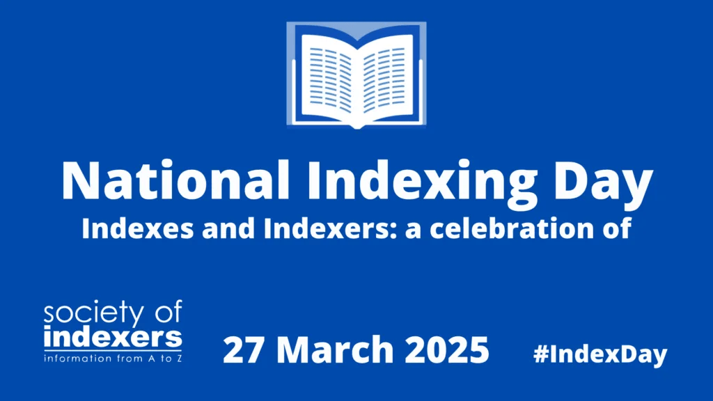 The Society of Indexers is celebrating National Indexing Day for the seventh successive year on Thursday 27th March 2025. This year we will be celebrating with a half-day in-person workshop for publishing professionals in London, as well as online across social media with the tag #IndexDay.