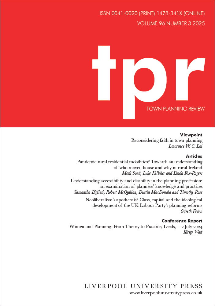 The editors of Town Planning Review (TPR) have selected the following paper as the Featured Article in TPR 96.3.