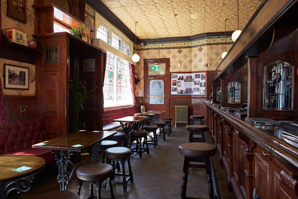The Grade II White Swan is an English pub that was adopted by the Irish. In 1969 a Roscommon couple, Michael and Agnes Creaton, took it on. Sadly, Michael died in 1975, but Agnes kept the tenancy and passed it to her daughter Angela, who ran the pub until 2019. The pub, built in 1899-1900 by James and Lister Lea for Ansells Brewery, boasts almost all its original features, including glazed Minton tiles lining the walls and passageways.